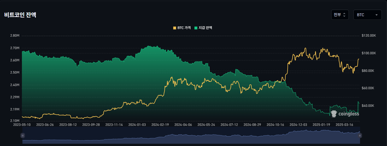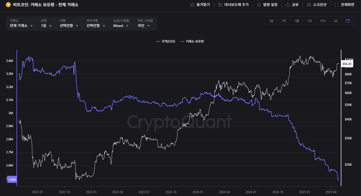 거래소에 보관된 비트코인의 양은 매우 중요한 지표입니다.