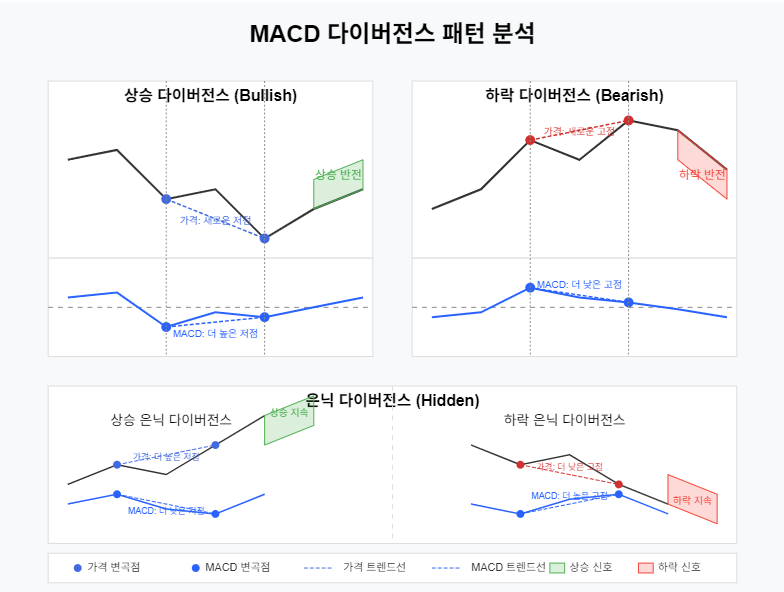 이 사례는 MACD 다이버전스가 중요한 반전 시점을 포착하고, 히스토그램 분석이 모멘텀 변화를 조기에 감지하는 데 효과적임을 보여줍니다.